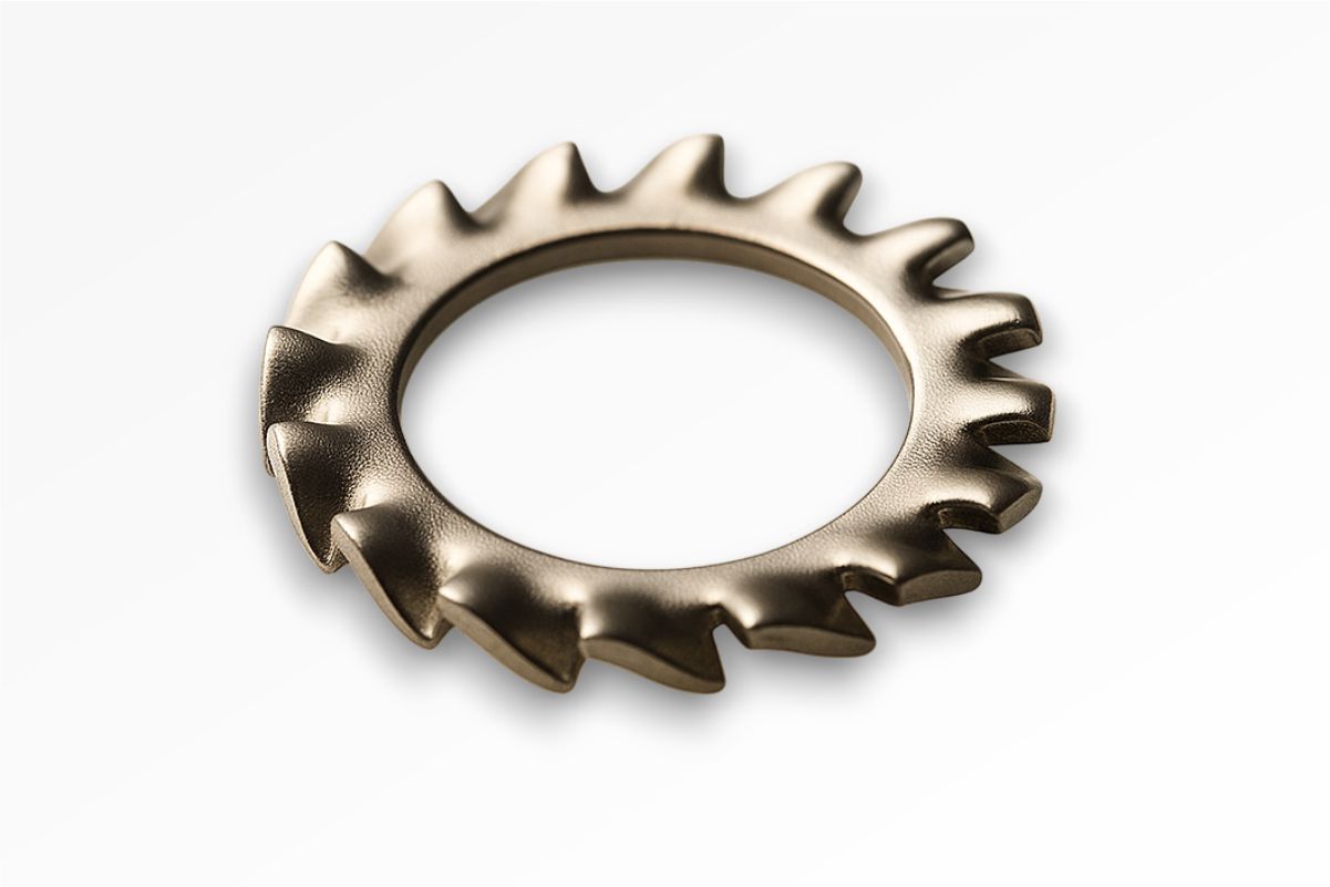 Projetada para travar a fixação, impedindo que o parafuso ou a porca afrouxe com vibrações. Seus dentes (internos ou externos) cravam nas superfícies de contato, criando atrito.