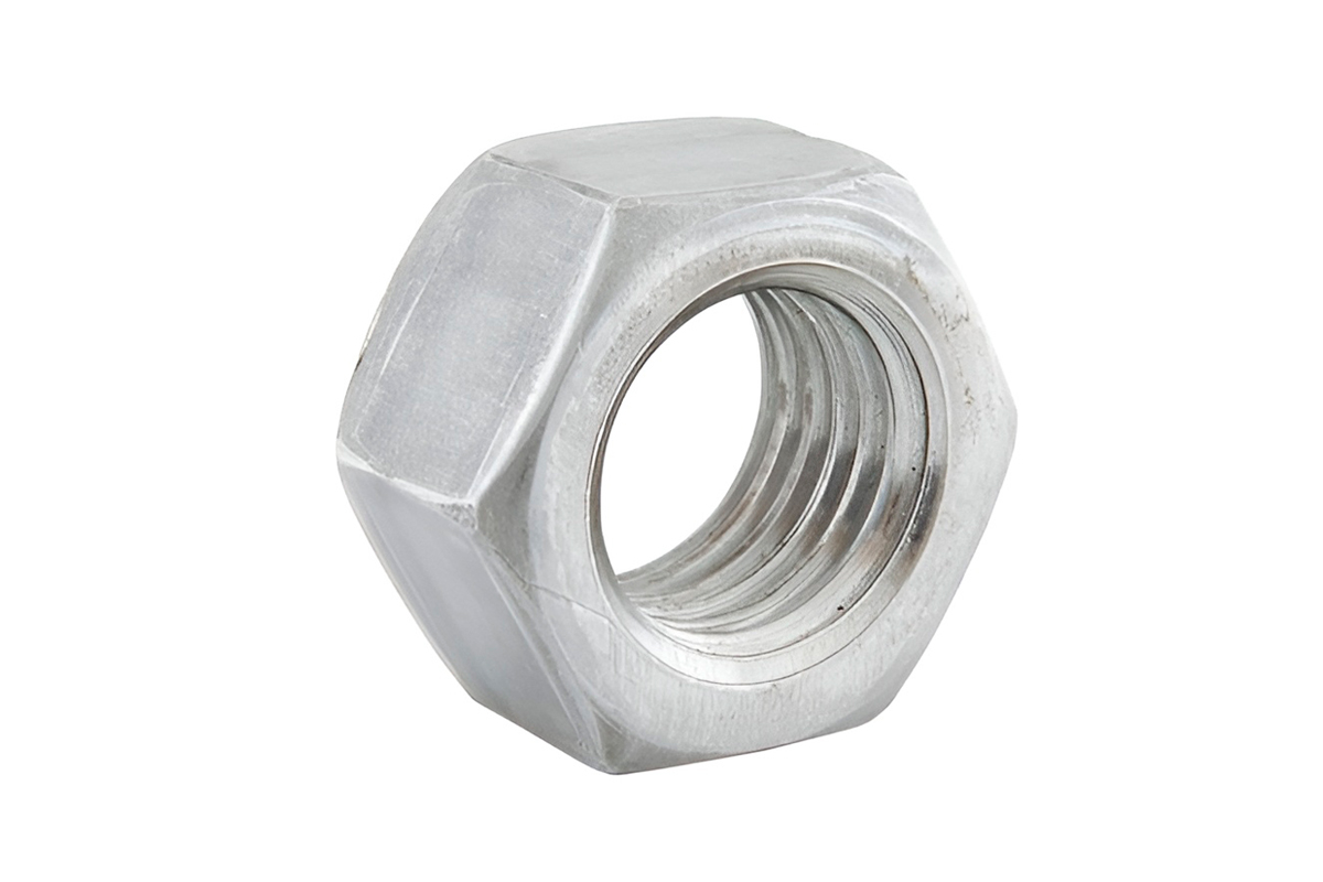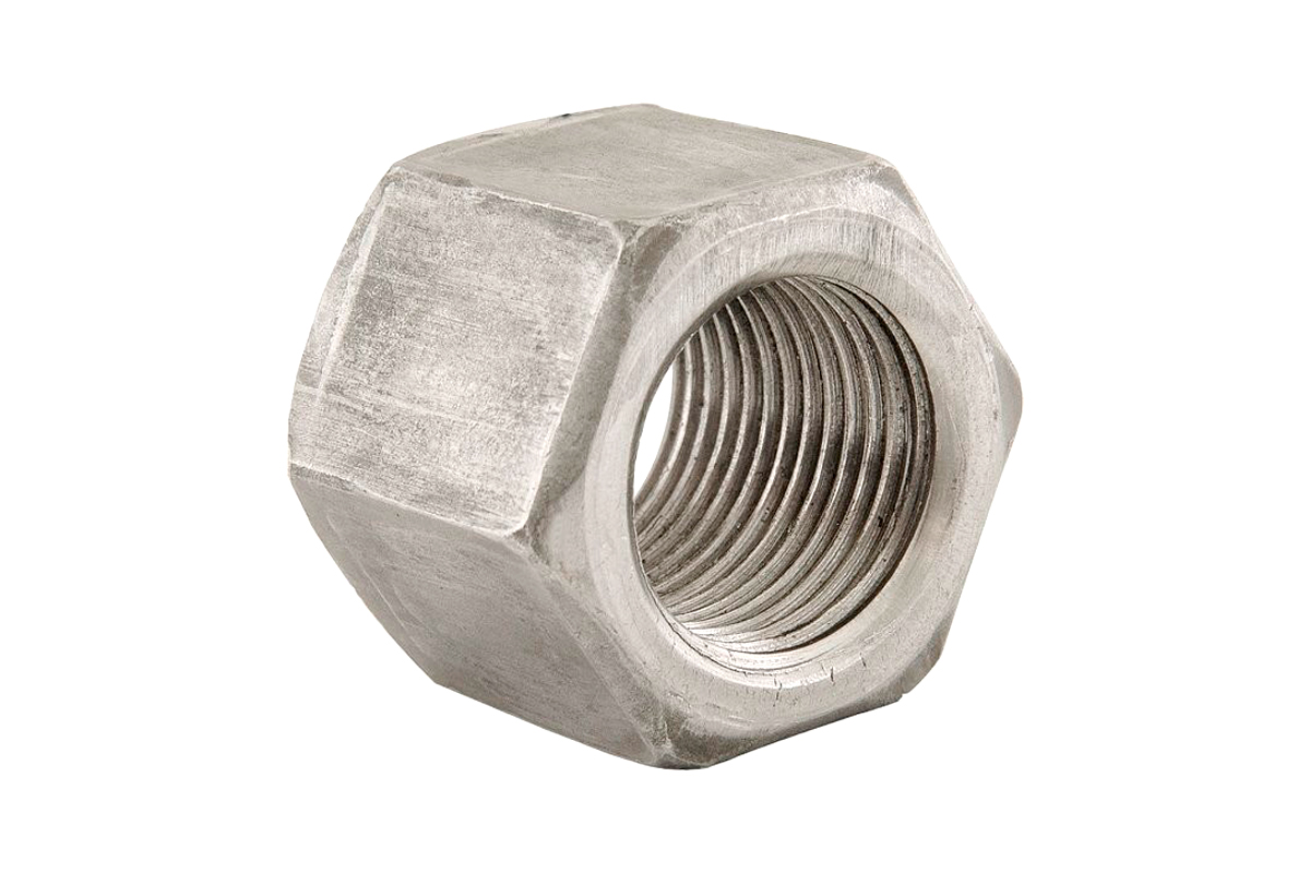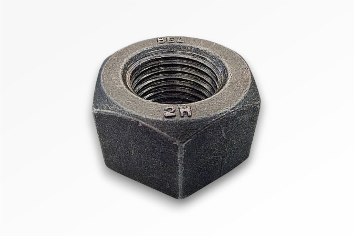 Uma porca robusta, mais larga e mais alta que a porca sextavada comum, projetada para aplicações estruturais. A especificação "1942H" (referente à norma ASTM A194 Gr. 2H) indica alta resistência e é usada com parafusos de alta carga.